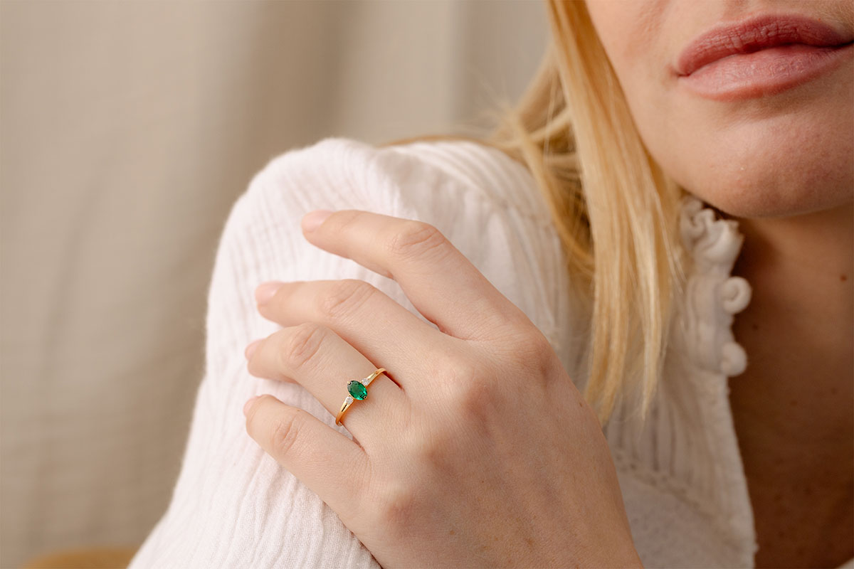 Bague Nerea – Or jaune 9 carats, émeraude et diamants synthétiques