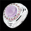 La bague Orthense est sertie d’une améthyste cabochon et de tourmalines roses, toutes deux de qualité minimum Very Good, assurant un éclat et une beauté durables.