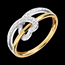 Ce motif en forme de cœur s'enlace élégamment autour d'un anneau en or jaune 18 carats, créant un contraste raffiné entre les deux ors.