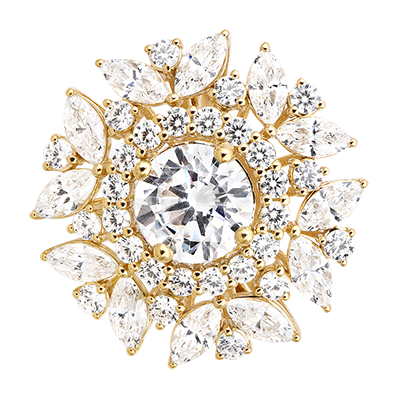 Un bijou solaire et majestueux : la bague Solarys en or jaune recyclé rayonne autour d’un diamant de synthèse de 3 carats, serti au cœur d’un éclat en corolle.Ses pétales sertis de marquises et brillants dessinent un halo étincelant.Un hommage à la lumière dans toute sa puissance. Or jaune (18 carats = 750/-): 8.8 g. Diamant synthétique : 41 - Total: 6.56 carat Plus dimensions