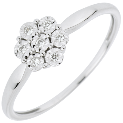 Bague Solitaire Fraicheur - Fleur de Flocon - 7 diamants - or blanc 18 carats