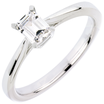 un diamant solitaire taille émeraude sublimé par une monture pure et élégante.
