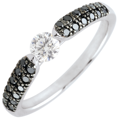 Bague solitaire Triomphale - diamants noirs - 0.25 carat - or blanc 18 carats