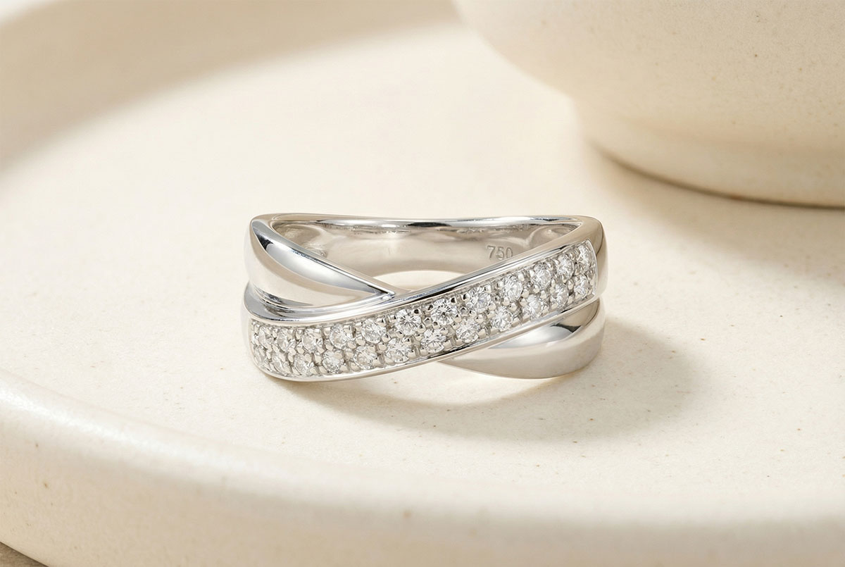 Bague tandem or blanc 18 carats semi pavée - 0.26 carats - 26 diamants