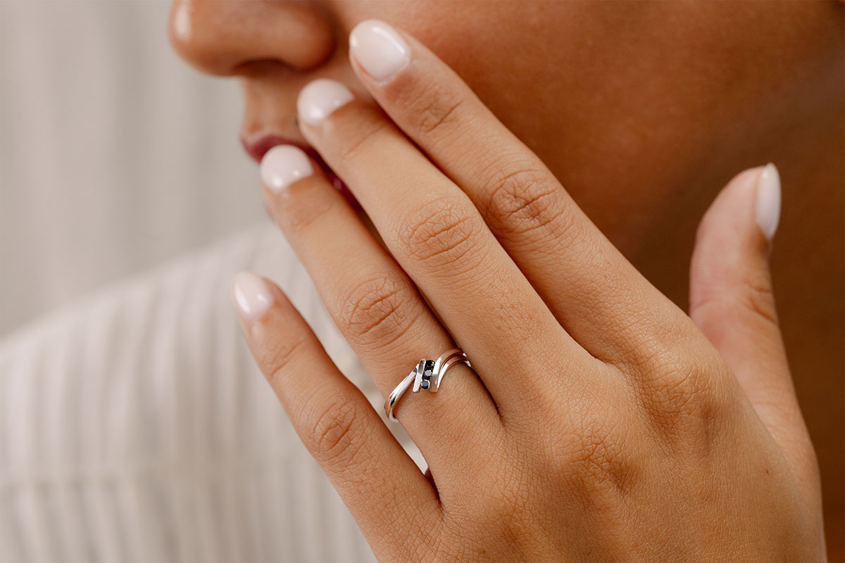 Bague Trilogie Nid Précieux - Euphorie - or blanc 18 carats - diamants noirs