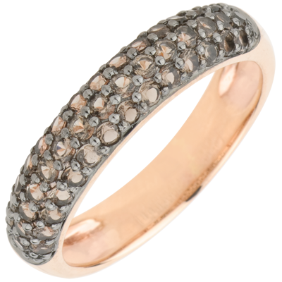 Bague Oiseau de Paradis - trois rangs - or rose 9 carats et quartz fumé