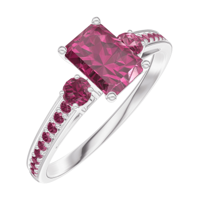 « L'ATELIER » Nº 1001918Bague Or blanc 9 carats - Rubis synthétique Rectangle 0.5 carat - Pierres de côté Rubis - Sertissage Rubis