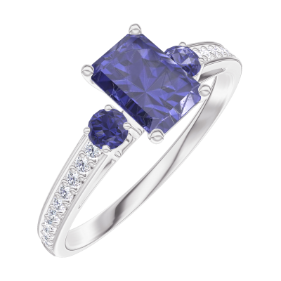 « L'ATELIER » Nº1002409Bague Or blanc 18 carats - Saphir synthétique Rectangle 0.5 carat - Pierres de côté Saphir bleu - Sertissage Diamant synthétique