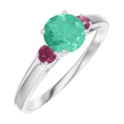 « L'ATELIER » Nº 1002709Bague Or blanc 18 carats - Émeraude synthétique Rond 0.5 carat - Pierres de côté Rubis 4.5 (16)