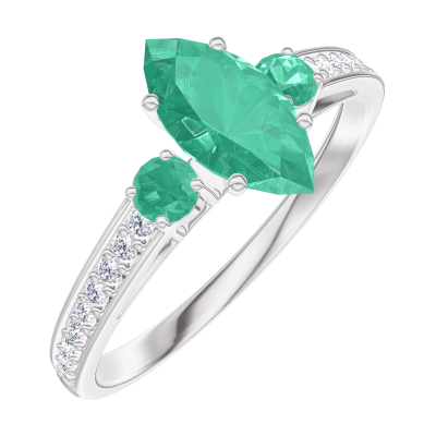 « L'ATELIER » Nº1003145Bague Or blanc 18 carats - Émeraude synthétique Marquise 0.5 carat - Pierres de côté Émeraude - Sertissage Diamant synthétique