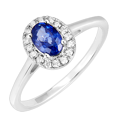 « L'ATELIER » Nº 1006786Bague Or blanc 18 carats - Saphir synthétique Ovale 0.5 carat - Halo Diamant synthétique 4.5 (12)