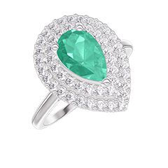Bague Or blanc 9 carats - Émeraude synthétique Poire 0.5 carat - Halo Diamant synthétique