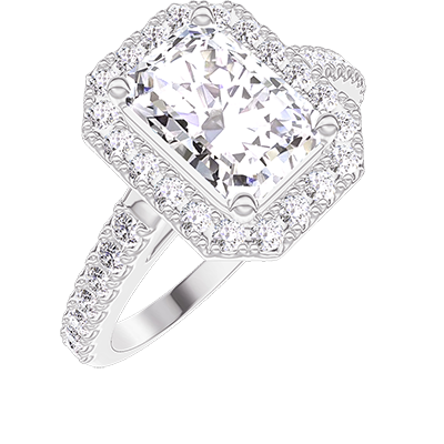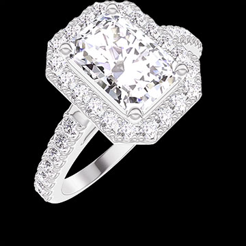 « L'ATELIER » Nº 1275992Bague Or blanc 18 carats - Diamant synthétique Rectangle 1 carat - Halo Diamant synthétique - Sertissage Diamant synthétique