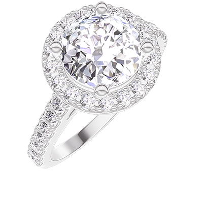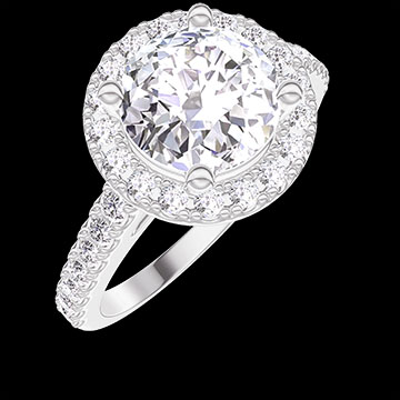 « L'ATELIER » Nº 1276002Bague Or blanc 9 carats - Diamant synthétique Rond 1 carat - Halo Diamant synthétique - Sertissage Diamant synthétique