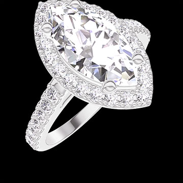 « L'ATELIER » Nº 1276999Bague Or blanc 9 carats - Diamant Marquise 1 carat - Halo Diamant - Sertissage Diamant