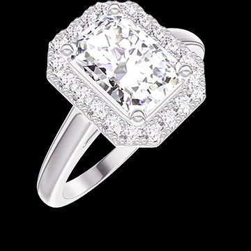 « L'ATELIER » Nº 1277148Bague Or blanc 18 carats - Diamant Rectangle 1 carat - Halo Diamant