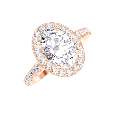 Bague Or rose 18 carats - Diamant synthétique Ovale 1 carat - Halo Diamant synthétique - Sertissage Diamant synthétique