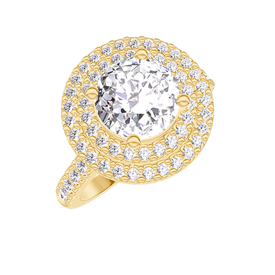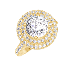 Bague Or jaune 18 carats - Diamant synthétique Rond 1 carat - Halo Diamant synthétique - Sertissage Diamant synthétique