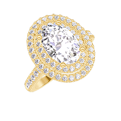 Bague Or jaune 18 carats - Diamant synthétique Ovale 1 carat - Halo Diamant synthétique - Sertissage Diamant synthétique