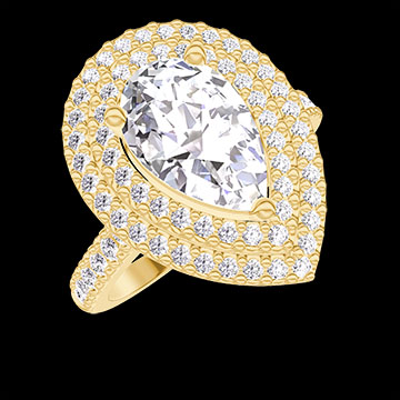 « L'ATELIER » Nº 1344548Bague Or jaune 9 carats - Diamant synthétique Poire 1 carat - Halo Diamant synthétique - Sertissage Diamant synthétique