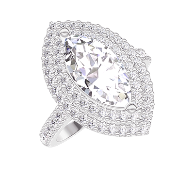 Bague Or blanc 18 carats - Diamant synthétique Marquise 1 carat - Halo Diamant synthétique - Sertissage Diamant synthétique