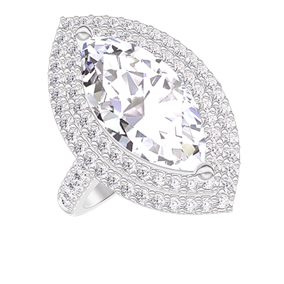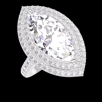Bague Or blanc 18 carats - Diamant synthétique Marquise 2 carat - Halo Diamant synthétique - Sertissage Diamant synthétique