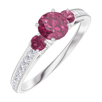 « L'ATELIER » Nº 160648Bague Or blanc 9 carats - Rubis Rond 0.3 carat - Pierres de côté Rubis - Sertissage Diamant 4.5