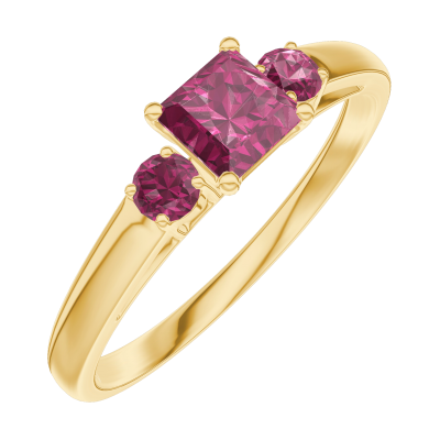 « L'ATELIER » Nº 160742Bague Or jaune 9 carats - Rubis Princesse 0.3 carat - Pierres de côté Rubis