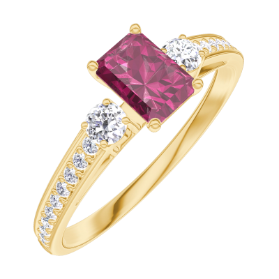 « L'ATELIER » Nº 160825Bague Or jaune 18 carats - Rubis Rectangle 0.3 carat - Pierres de côté Diamant - Sertissage Diamant