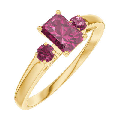 « L'ATELIER » Nº160842Bague Or jaune 9 carats - Rubis Rectangle 0.3 carat - Pierres de côté Rubis