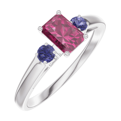 « L'ATELIER » Nº160864Bague Or blanc 9 carats - Rubis Rectangle 0.3 carat - Pierres de côté Saphir bleu