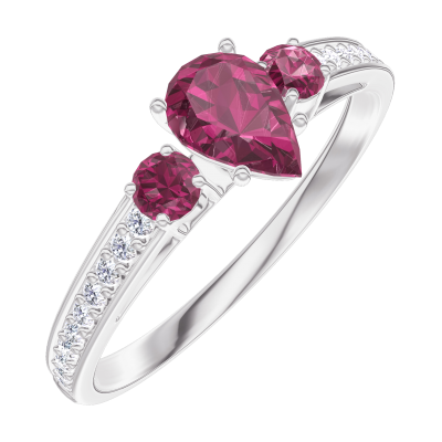 « L'ATELIER » Nº 161047Bague Or blanc 18 carats - Rubis Poire 0.3 carat - Pierres de côté Rubis - Sertissage Diamant