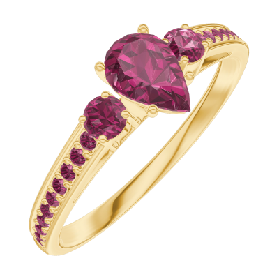 « L'ATELIER » Nº161049Bague Or jaune 18 carats - Rubis Poire 0.3 carat - Pierres de côté Rubis - Sertissage Rubis