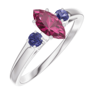 « L'ATELIER » Nº161164Bague Or blanc 9 carats - Rubis Marquise 0.3 carat - Pierres de côté Saphir bleu