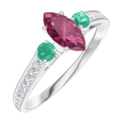 « L'ATELIER » Nº 161188Bague Or blanc 9 carats - Rubis Marquise 0.3 carat - Pierres de côté Émeraude - Sertissage Diamant