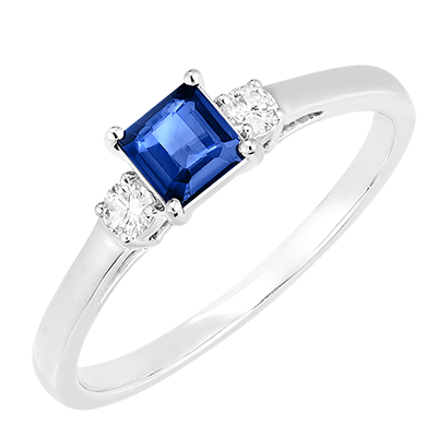 « L'ATELIER » Nº161324Bague Or blanc 9 carats - Saphir bleu Princesse 0.3 carat - Pierres de côté Diamant