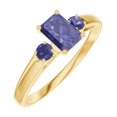 « L'ATELIER » Nº161462Bague Or jaune 9 carats - Saphir bleu Rectangle 0.3 carat - Pierres de côté Saphir bleu