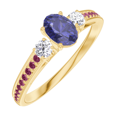 « L'ATELIER » Nº161529Bague Or jaune 18 carats - Saphir bleu Ovale 0.3 carat - Pierres de côté Diamant - Sertissage Rubis 5 (3)