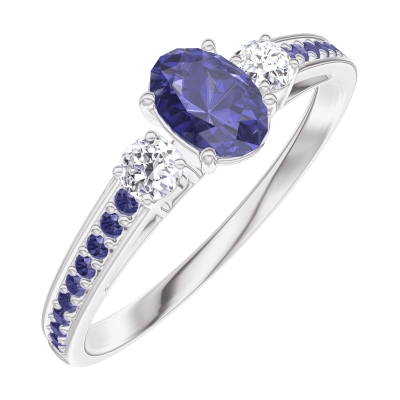 « L'ATELIER » Nº161536Bague Or blanc 9 carats - Saphir bleu Ovale 0.3 carat - Pierres de côté Diamant - Sertissage Saphir bleu 5 (3)