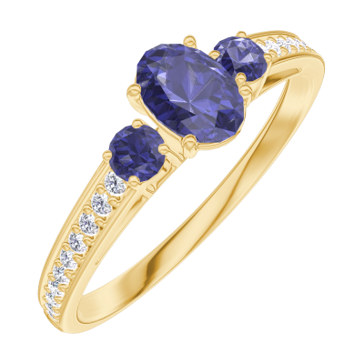 « L'ATELIER » Nº161566Bague Or jaune 9 carats - Saphir bleu Ovale 0.3 carat - Pierres de côté Saphir bleu - Sertissage Diamant 5 (3)