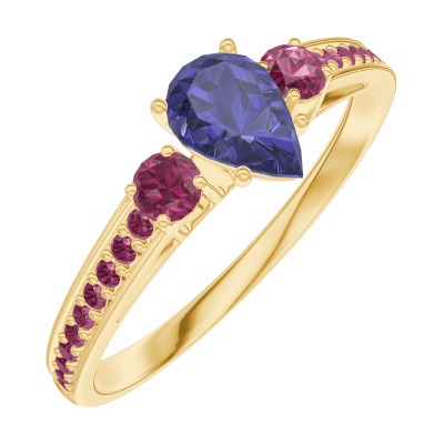 « L'ATELIER » Nº 161649Bague Or jaune 18 carats - Saphir bleu Poire 0.3 carat - Pierres de côté Rubis - Sertissage Rubis