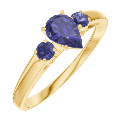 « L'ATELIER » Nº161661Bague Or jaune 18 carats - Saphir bleu Poire 0.3 carat - Pierres de côté Saphir bleu