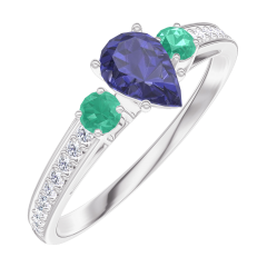 « L'ATELIER » Nº 161688Bague Or blanc 9 carats - Saphir bleu Poire 0.3 carat - Pierres de côté Émeraude - Sertissage Diamant