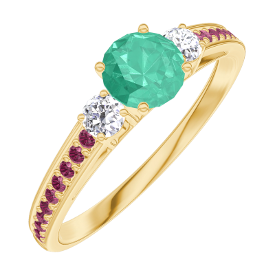 « L'ATELIER » Nº 161829Bague Or jaune 18 carats - Émeraude Rond 0.3 carat - Pierres de côté Diamant - Sertissage Rubis 4.5 (36)
