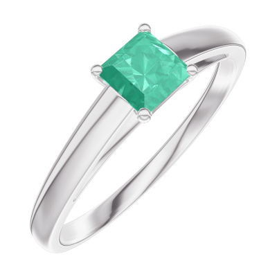 « L'ATELIER » Nº 161904Bague Or blanc 9 carats - Émeraude Princesse 0.3 carat