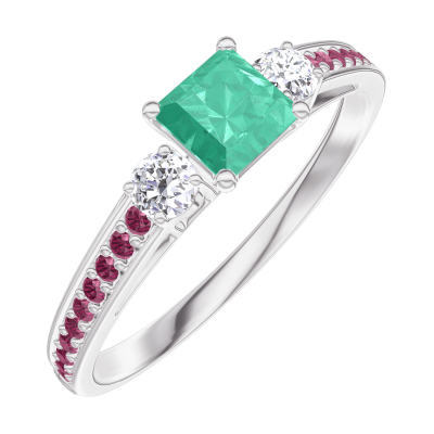 « L'ATELIER » Nº161932Bague Or blanc 9 carats - Émeraude Princesse 0.3 carat - Pierres de côté Diamant - Sertissage Rubis