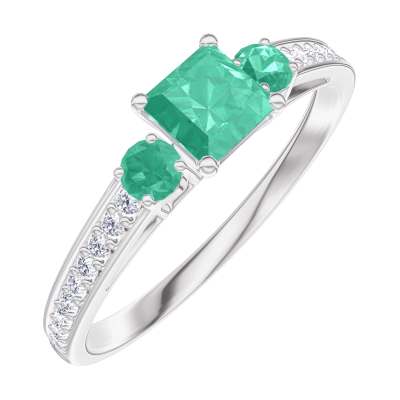 « L'ATELIER » Nº161987Bague Or blanc 18 carats - Émeraude Princesse 0.3 carat - Pierres de côté Émeraude - Sertissage Diamant