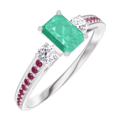 « L'ATELIER » Nº162032Bague Or blanc 9 carats - Émeraude Rectangle 0.3 carat - Pierres de côté Diamant - Sertissage Rubis