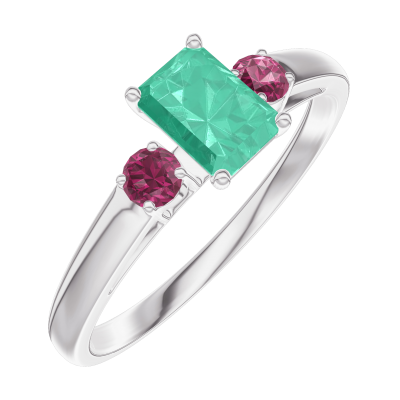 « L'ATELIER » Nº162044Bague Or blanc 9 carats - Émeraude Rectangle 0.3 carat - Pierres de côté Rubis