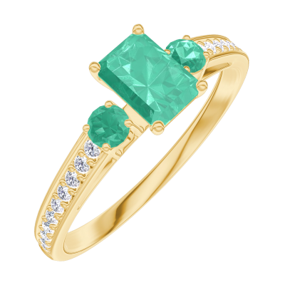 « L'ATELIER » Nº162086Bague Or jaune 9 carats - Émeraude Rectangle 0.3 carat - Pierres de côté Émeraude - Sertissage Diamant